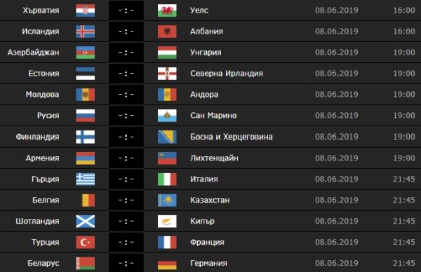 „Петлите“ водят в класирането с 6 точки, но с толкова са и южните ни съседи. В другите двубои Исландия ще е домакин на Албания, а Молдова и Андора излизат в търсене на първи точки в групата. Фаворитите в група „I“ Белгия и Русия едва ли ще се затруднят да спечелят съответно срещу Сан Марино и Казахстан. Шотландия пък няма право на грешка при домакинството си на Кипър, за да запази шансове за едно от първите две емста.