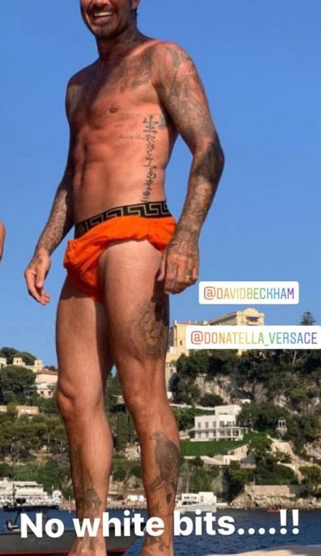 Дейвид Бекъм разтуптя женските сърца, след като публикува фото в социалните мрежи, на което позира с оранжев бански по време на семейната си френска ваканция. Освен съпругата му Виктория и четирите им деца, компания му правят и неговите приятели Елтън Джон и Дейвид Фърниш.